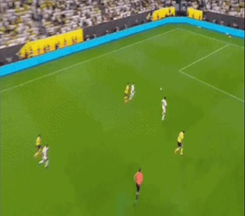 比赛一开始,主场作战的利雅得胜利很快控制比赛节奏,但是率先破门的却是吉达联合。第15分钟,本泽马在禁区前沿脚后跟妙传,迪亚比灵巧回敲,霸王龙顺势低射破门,利雅得胜利0-1吉达联合。