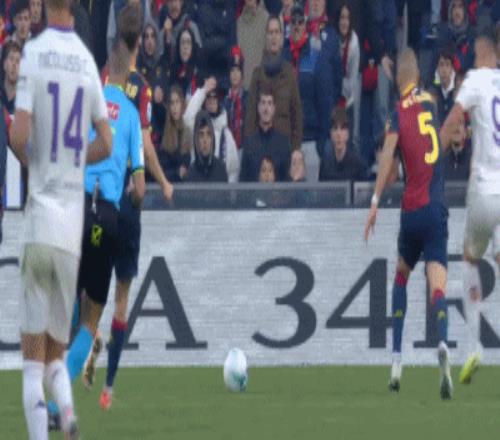 第19分钟,古德蒙德松点射扳平比分,热那亚1-1佛罗伦萨