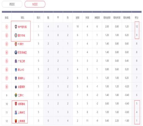 积分榜方面,神户胜利船客场击败申花后,4胜1负再多墨尔本城3分,依然是稳居榜首。申花输球后则是还是少成都蓉城1分排名倒数第2,中超3连冠的上海海港更惨,5轮只拿到1分排名垫底。加上倒数第3的成都蓉城,中超3强齐齐垫底,这也是相当的尴尬。
