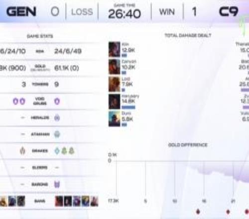 体育资讯12月6日称 Kespa杯今日正式打响,在Chovy、Ruler缺席的情况下,GEN被C9打成6-24。