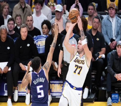 12月28日,湖人队球员卢卡·东契奇在比赛中庆祝投入三分球。